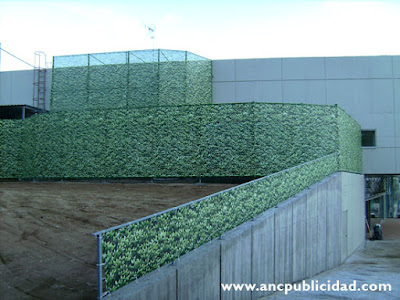 El proyecto incluye elementos de jardinería que en un futuro deberán cubrir esta lona publicitaria: hiedra. Esta planta que se plantará en breve deberá cubrir en un futuro toda la instalación. Para ello se sujetó una malla metálica de cerramiento a toda la estructura para que las raíces de la hiedra puedan trepar mejor.